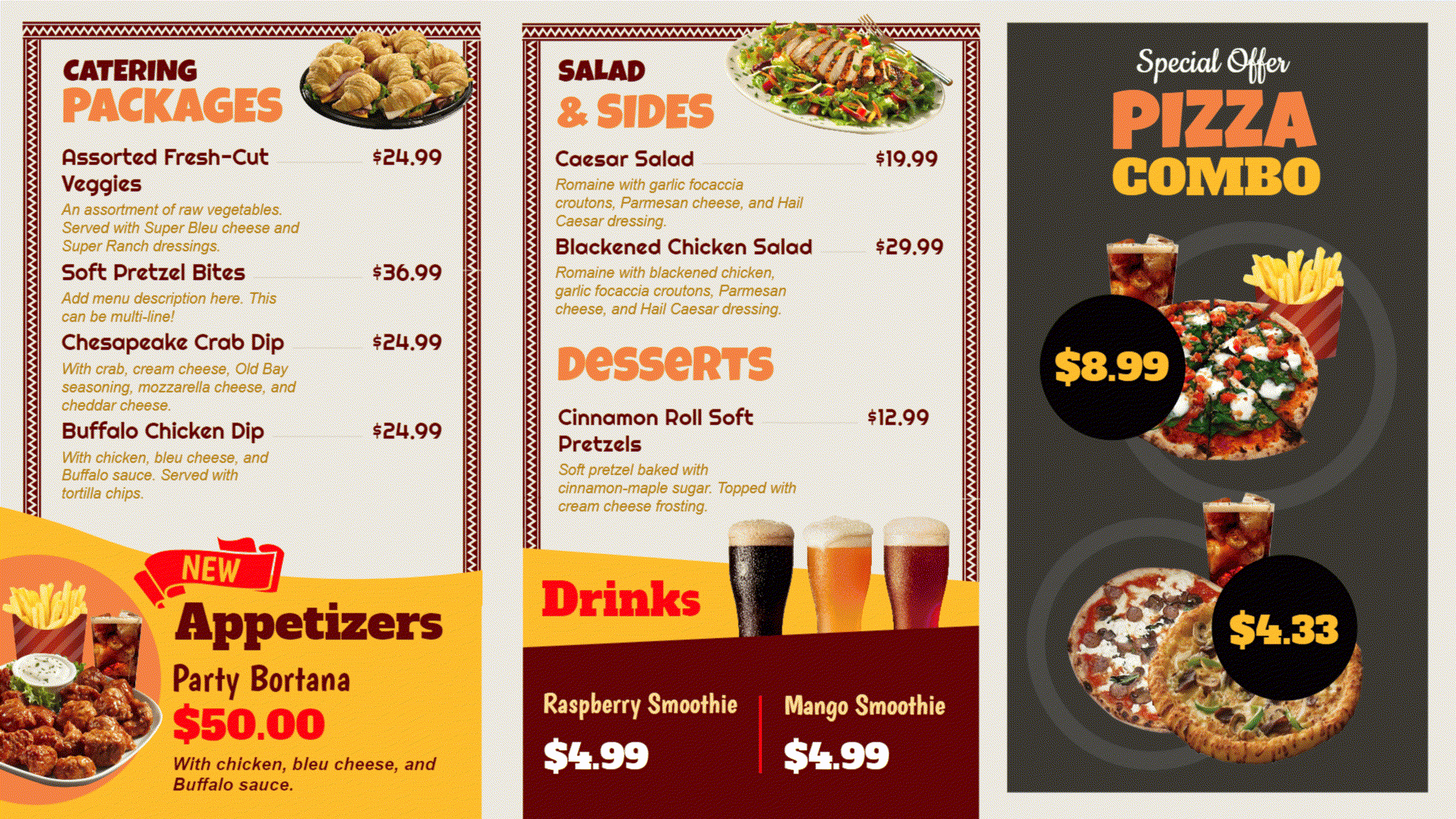DIGITAL MENUS DYNAMICS Combine professional design, creative ideas, advertising strategy, and jump to another level, make your business have a new modern image.